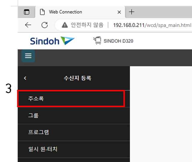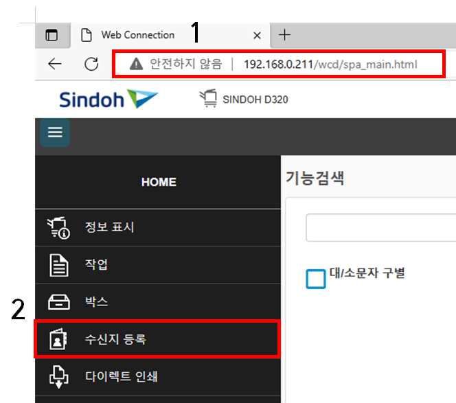 1. 인터넷 주소창에 복합기 IP주소 입력