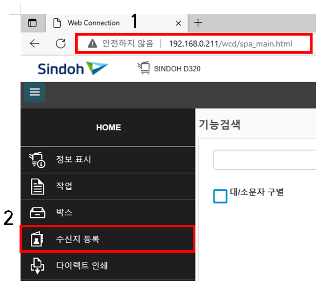 1. 인터넷 주소창에 복합기 IP 주소 입력