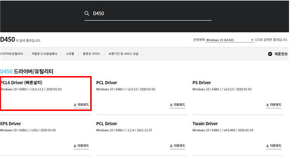 4. PCL 6 Driver(빠른설치) 드라이버 클릭 후 다운로드