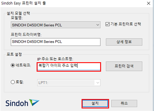 6. 네트워크에 복합기 아이피(IPv4) 주소 입력