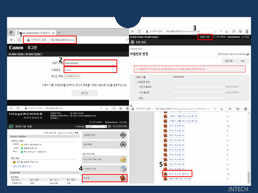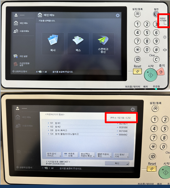 1. 인터넷 주소창에 복합기 ip주소 입력