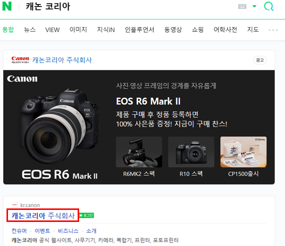 1. 검색창에 캐논 코리아 검색 후 사이트 접속